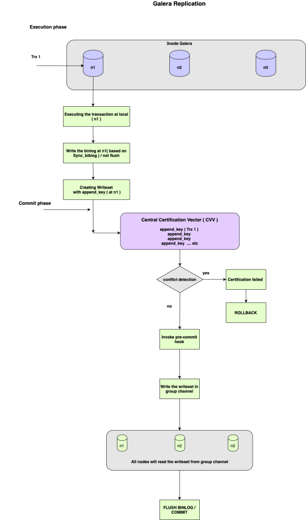Galera is the best solution for High Availability, It is being used by many peoples world wide . Galera is doing synchronous replication ( really it is Certification based replication ) to keep update the data on group nodes . In this blog I have explained about “How the Galera replication works?” . For the better understanding, I have made an architecture diagram to describe the replication flow . I have also provided the explanation for the key words which has used in the architecture diagram .