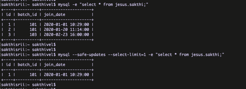 We can define the automatic number of rows limit for SELECT statements when using –safe-updates.